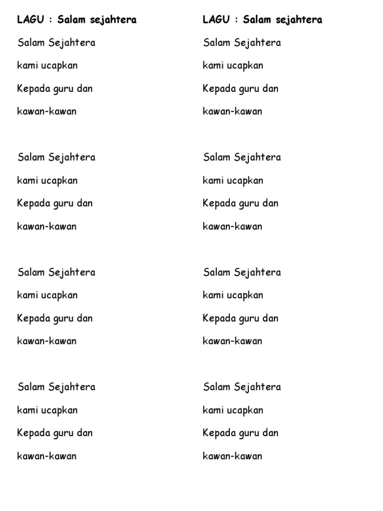 SEKOLAHKU SEJAHTERA Di sini bermula mengenal dunia bersama guru tercinta Seronok belajar selamat sentiasa Sekolahku SEJAHTERA Kesihatan diutama kebersihan dijaga Sama perkasa etika integriti di jiwa Kita selami empati bina kasih insani Teguh jati diri adab sopan hidup harmoni Sekolahku_SEJAHTERA Sekolahku_SEJAHTERA. Siti Nurul Afidah - 27 Agustus 2022 1610 WIB.